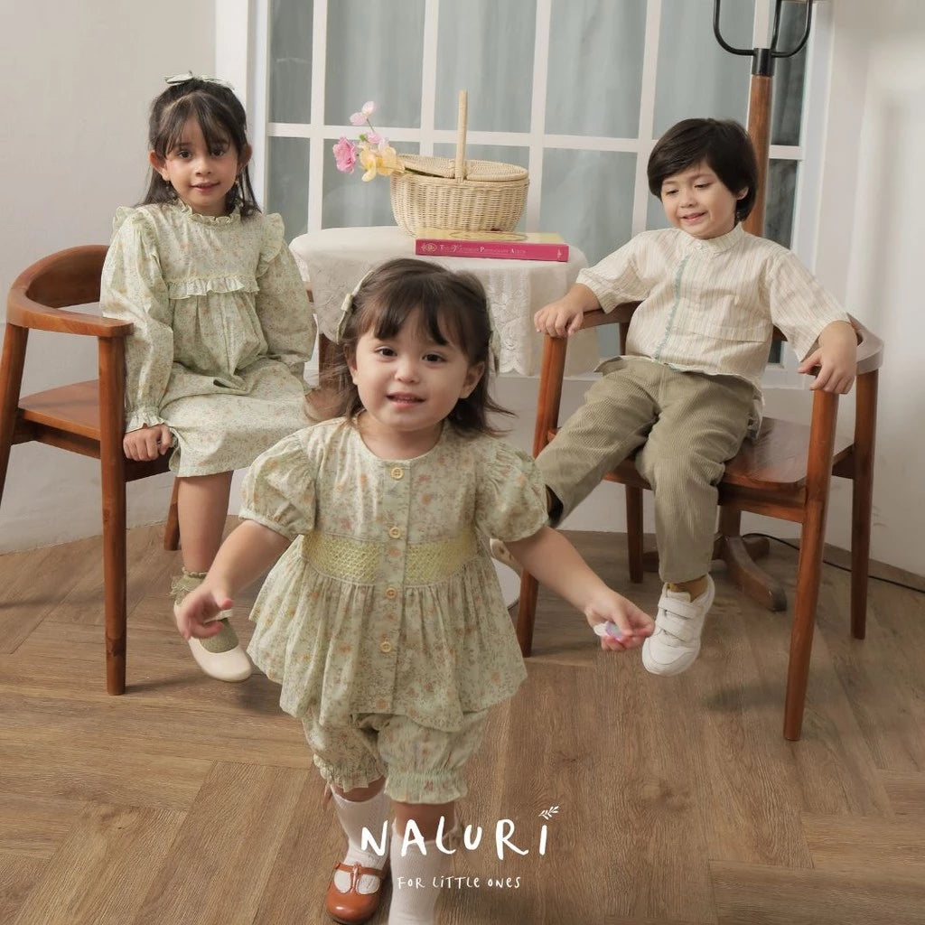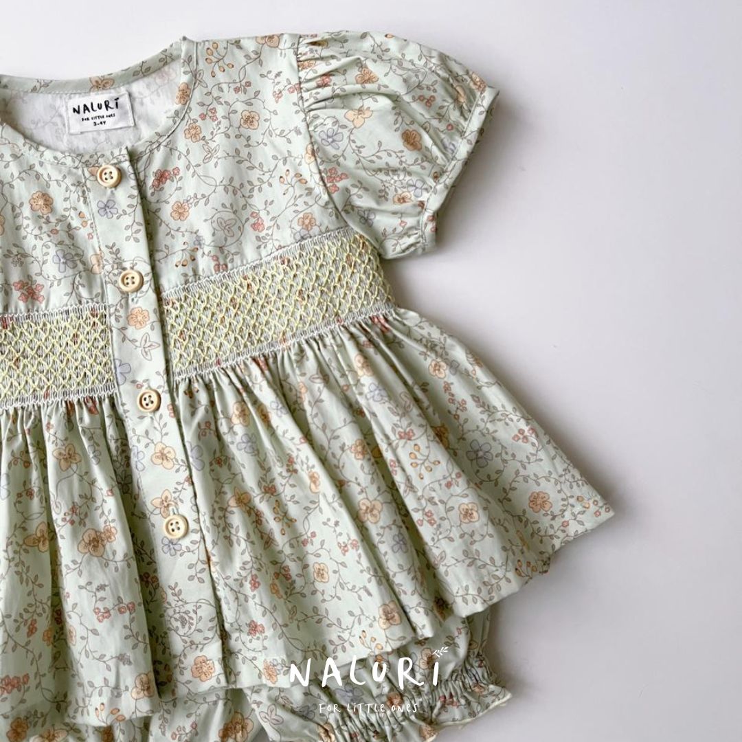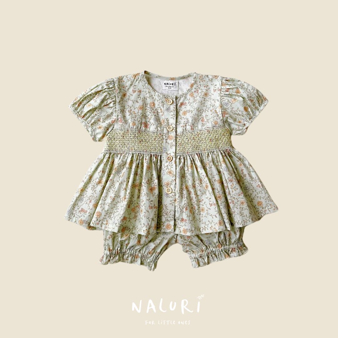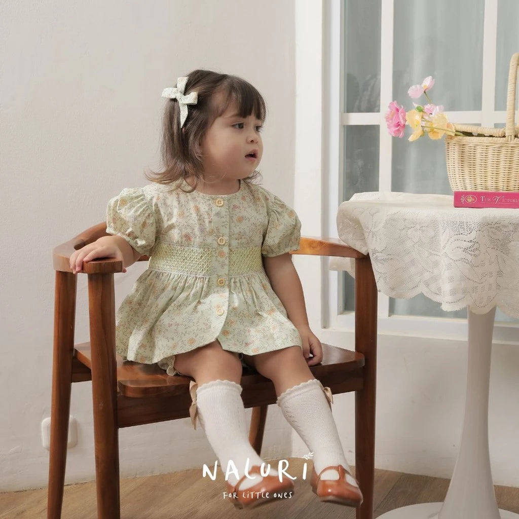 A girls' set featuring smocking detail on the chest — a beautiful outfit for your little one. The adorable bloomers are designed for all-day comfort. The lovely floral pattern is specially designed for the "Raya Collection" by Naluriforlittleones.
