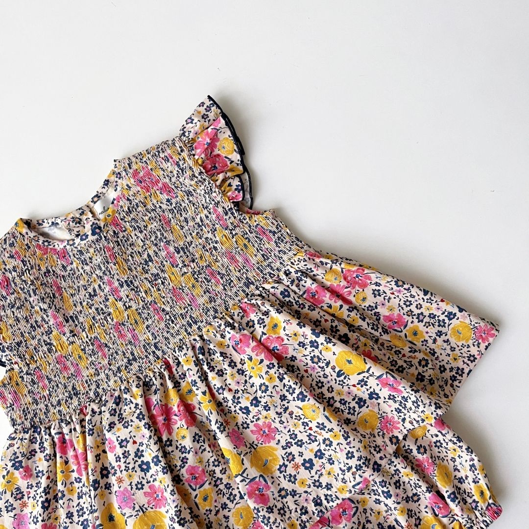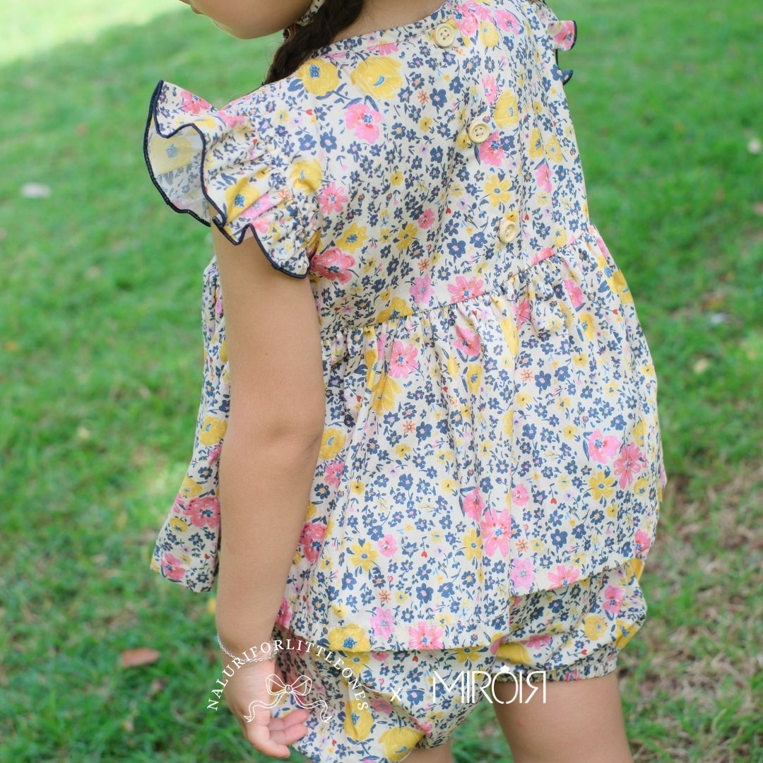 A sweet girls' set featuring a smocked top with ruffle sleeve details, paired with adorable matching bloomers—perfect for your little one. The charming floral print is exclusively designed for the Naluriforlittleones x Miroir collection