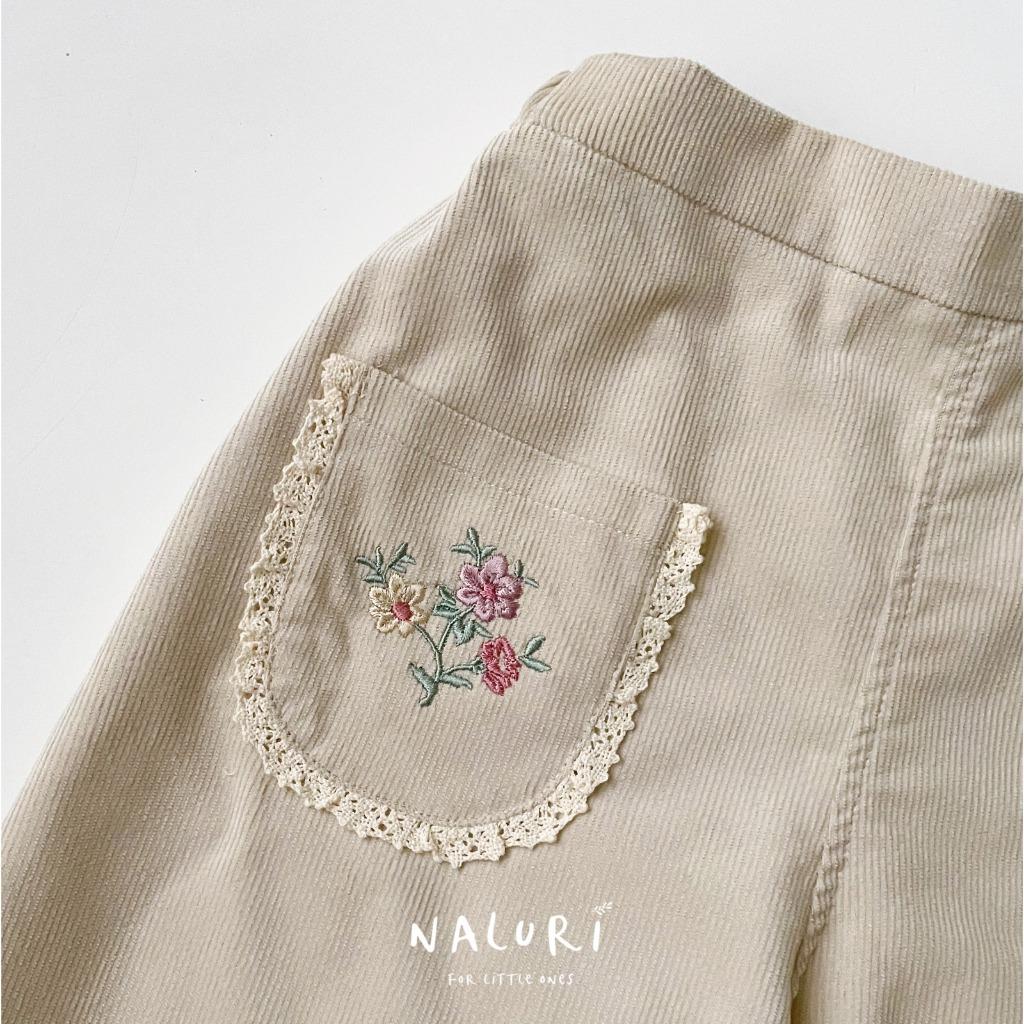 Girls’ long pants featuring lace and embroidery details on the pockets — a charming piece for your little one to wear. These pants are perfect for everyday wear.