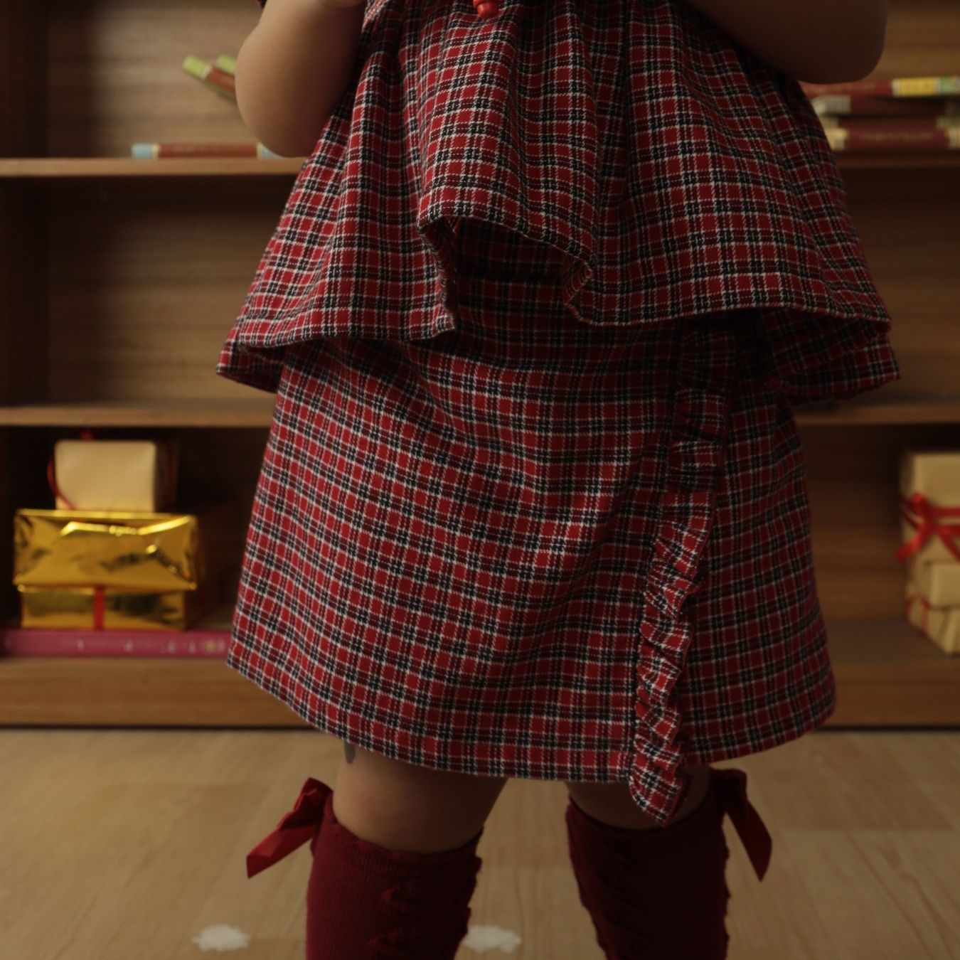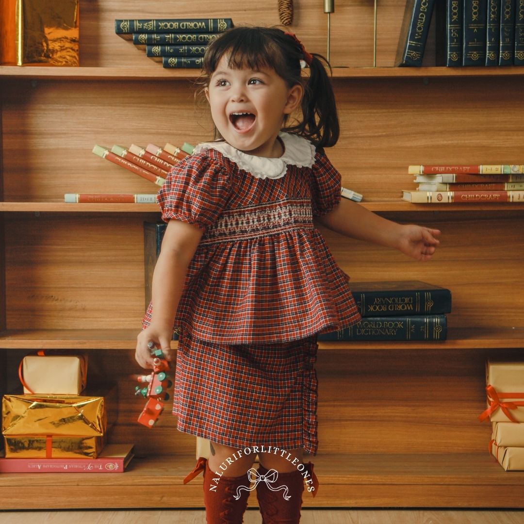A tartan-patterned skort with cute ruffle details looks absolutely adorable on your little one. This bottom piece becomes even lovelier when paired with the OLIVIA Top. The beautiful pattern is specially designed for the “Holiday Magic” collection by Naluriforlittleones.