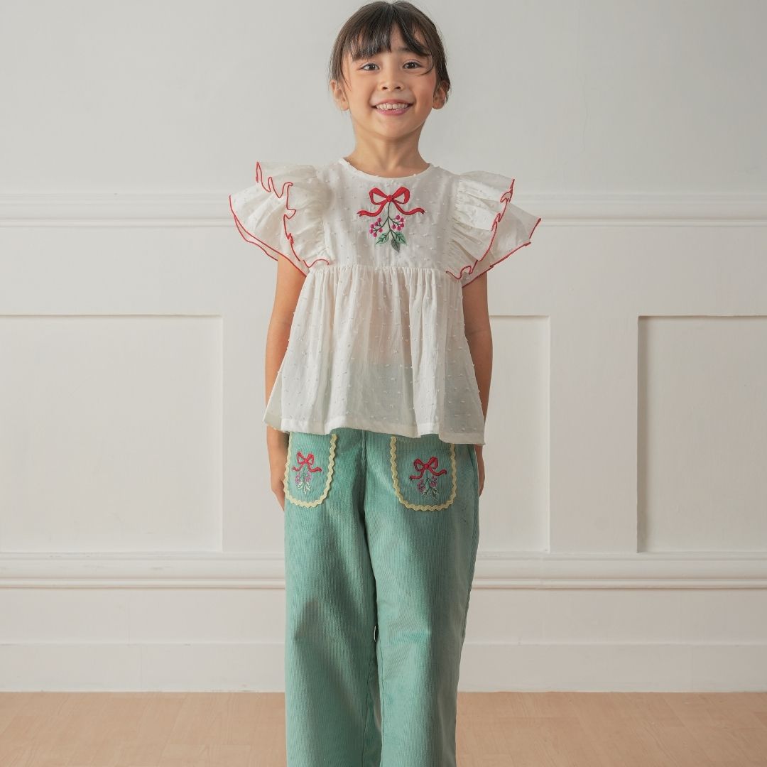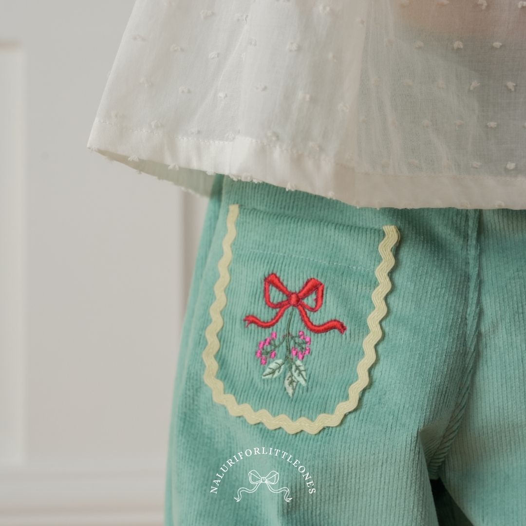 Girls’ long pants featuring delicate lace details on the pockets, making them look adorable on your little one. These pants are perfect for everyday wear. The beautiful pattern is specially designed for the "Blossom Tales" collection by Naluriforlittleones.