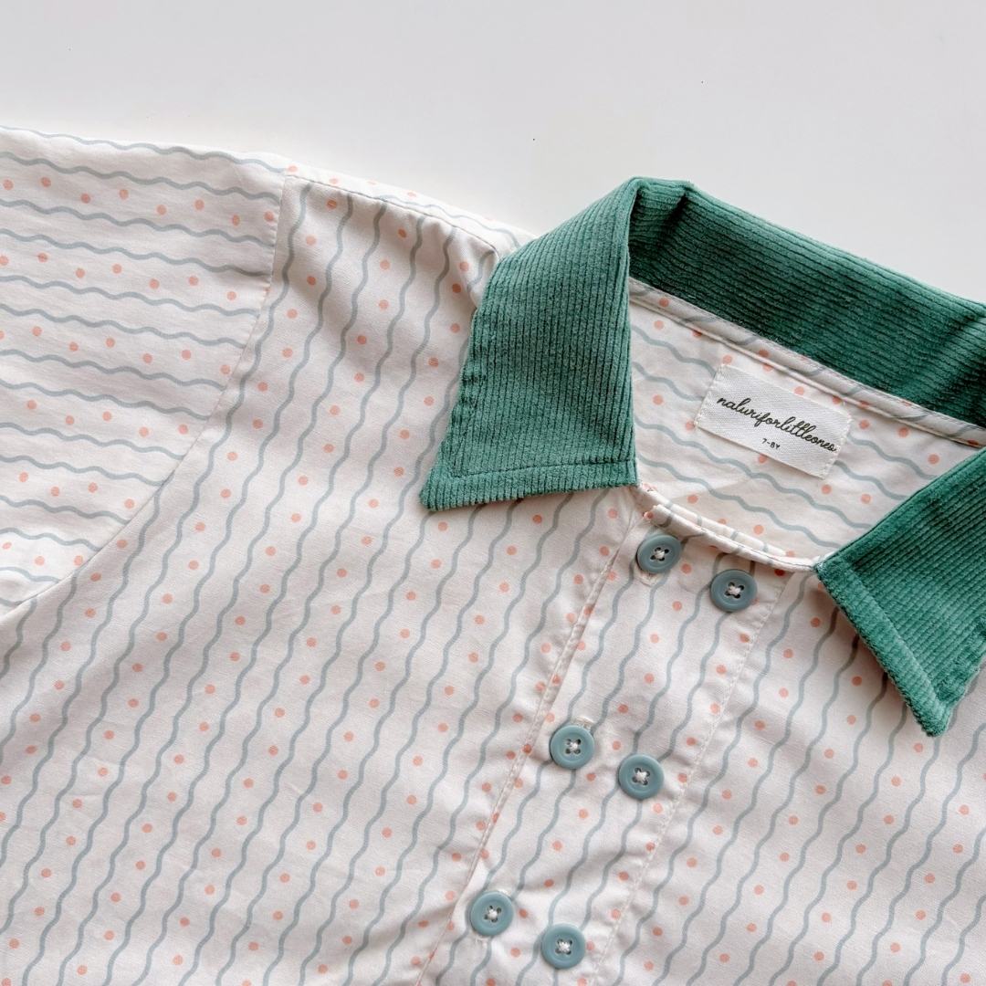 A shirt with a corduroy collar that looks stylish on your little one. Made from comfortable fabric, perfect for everyday wear.