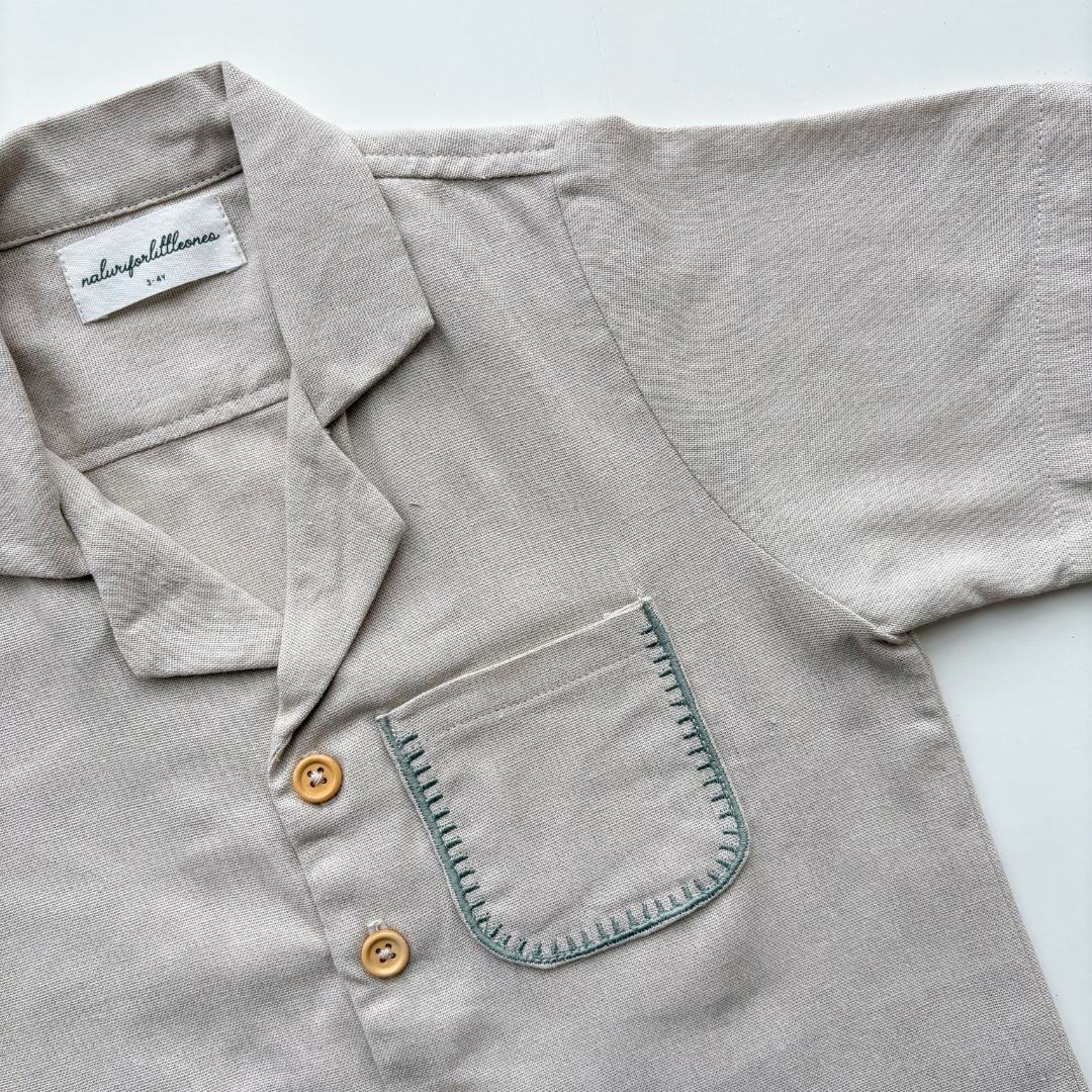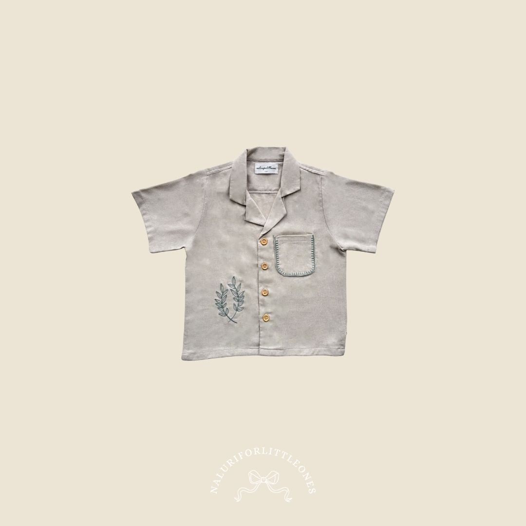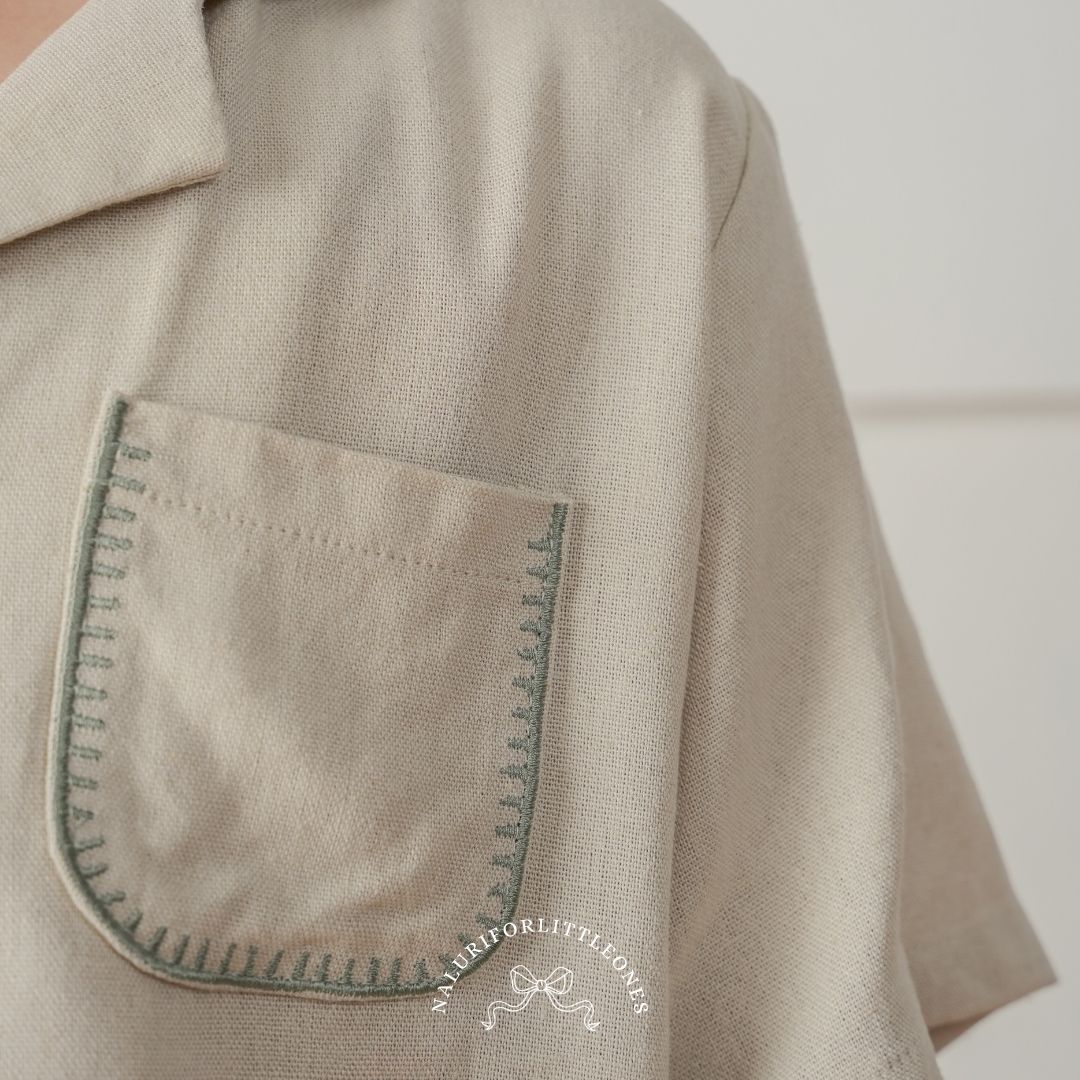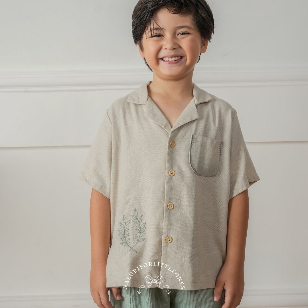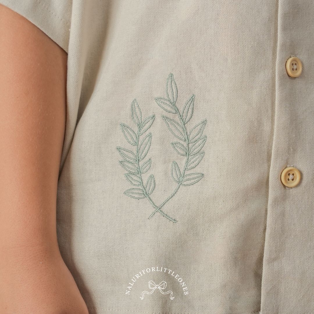 A collared cream shirt made from a cotton blend, featuring beautiful floral embroidery — perfect for your little one. This top pairs beautifully with the ‘Harper Pants’ corduroy trousers from Naluriforlittleones.