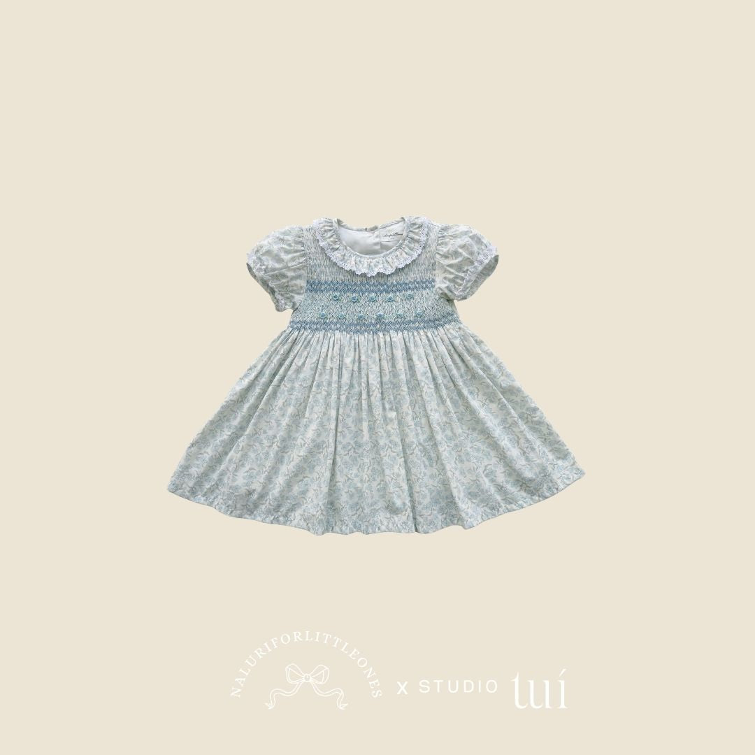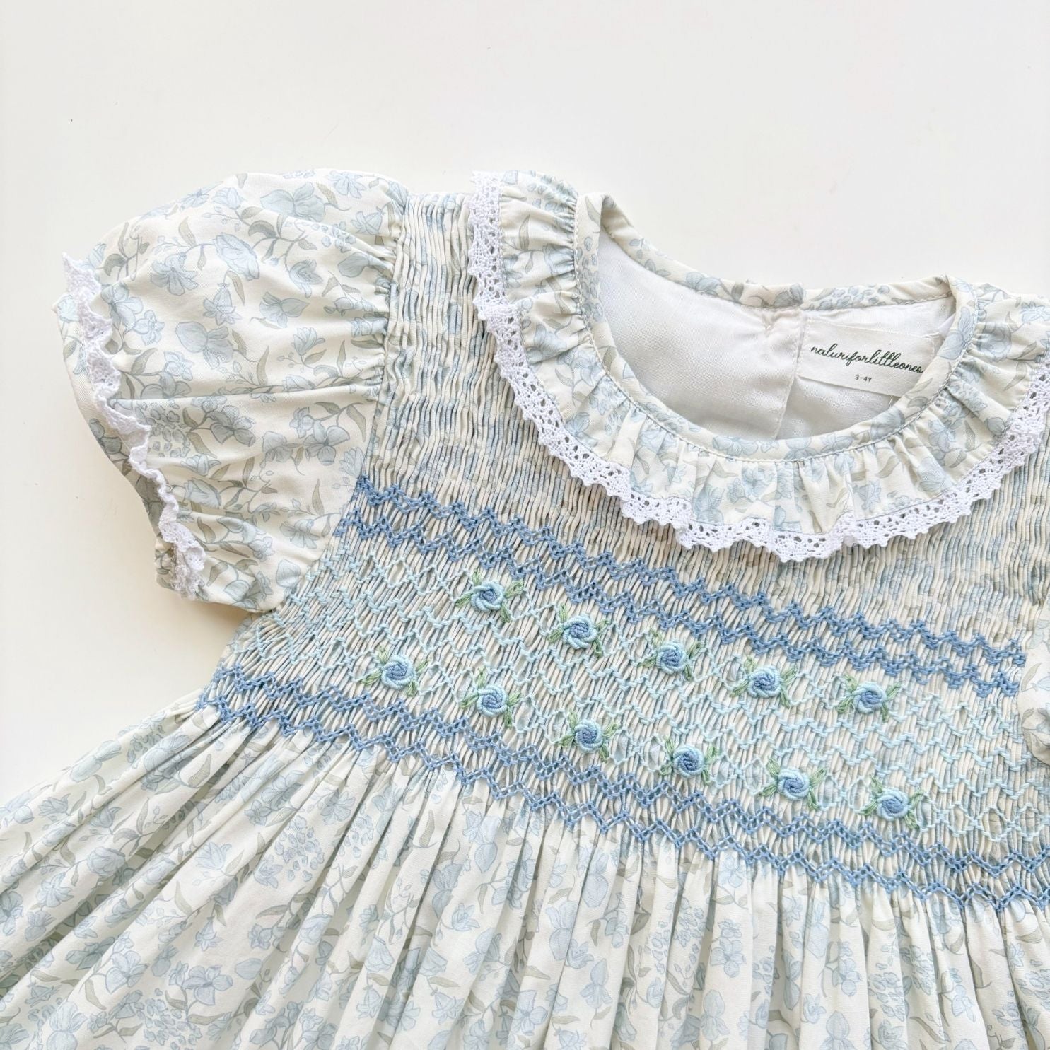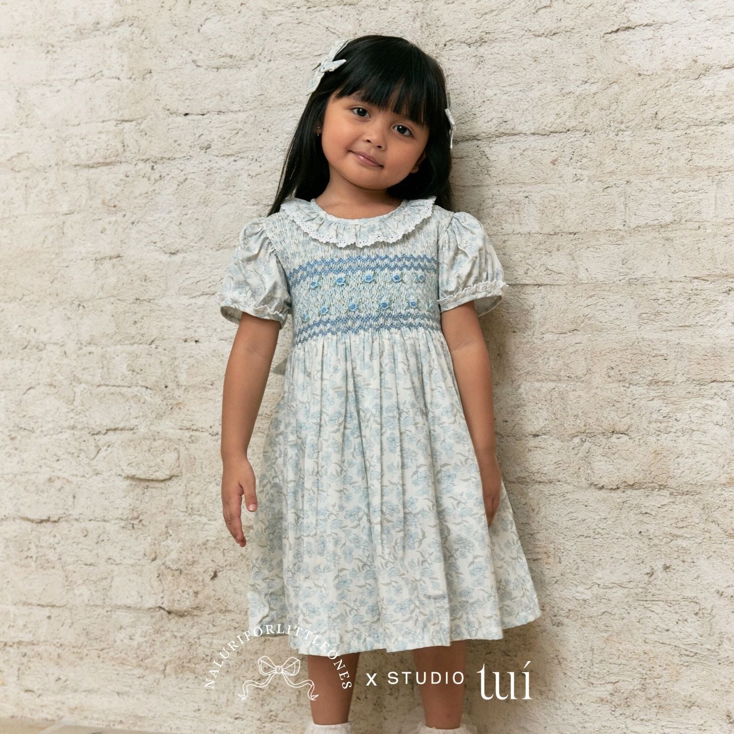 Girls’ dress with hand-smocked floral embroidery on the chest, beautifully accented with lace on the collar and sleeves — a truly charming look for your little one. This adorable dress is perfect for both everyday wear and special events. The lovely floral motif is specially designed for the mom-and-daughter matching collection by "Naluriforlittleones x Studio Tui."
