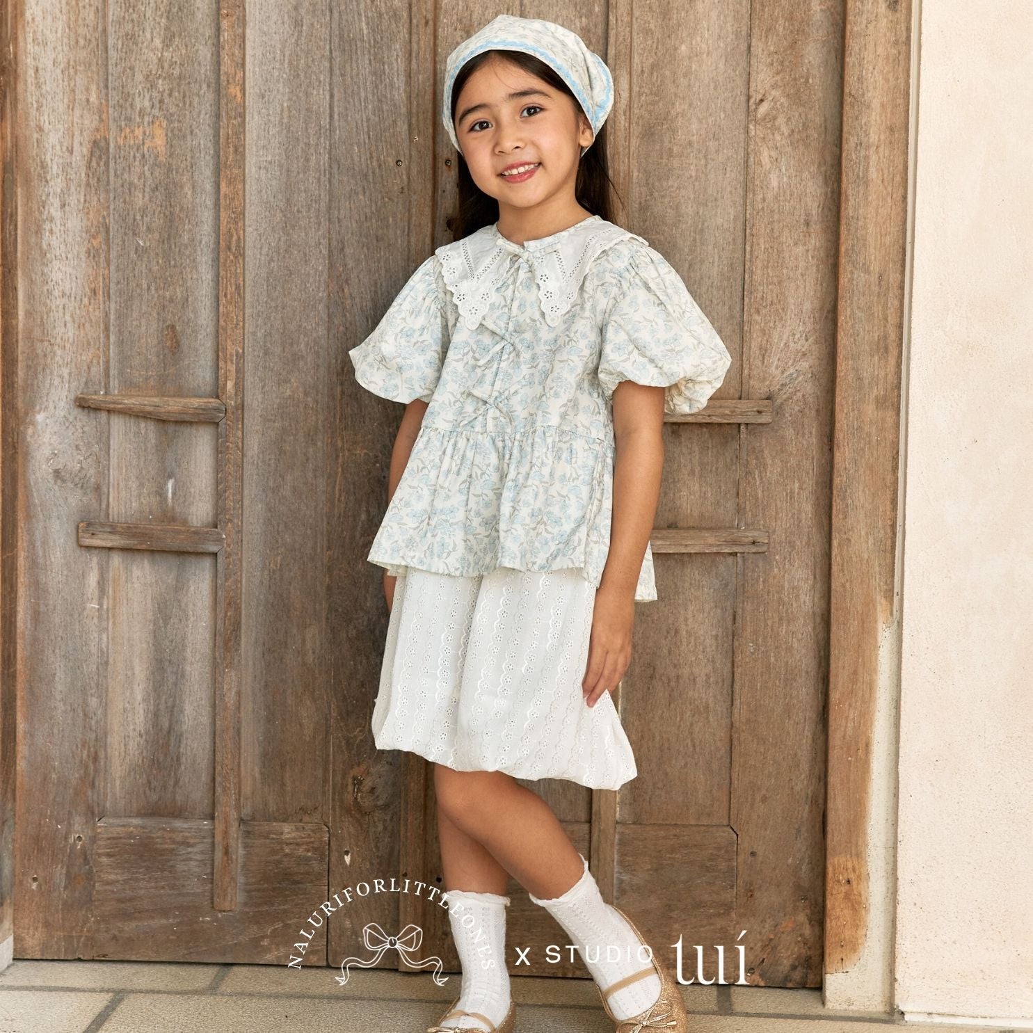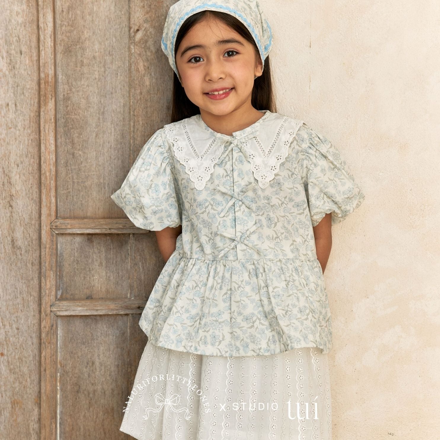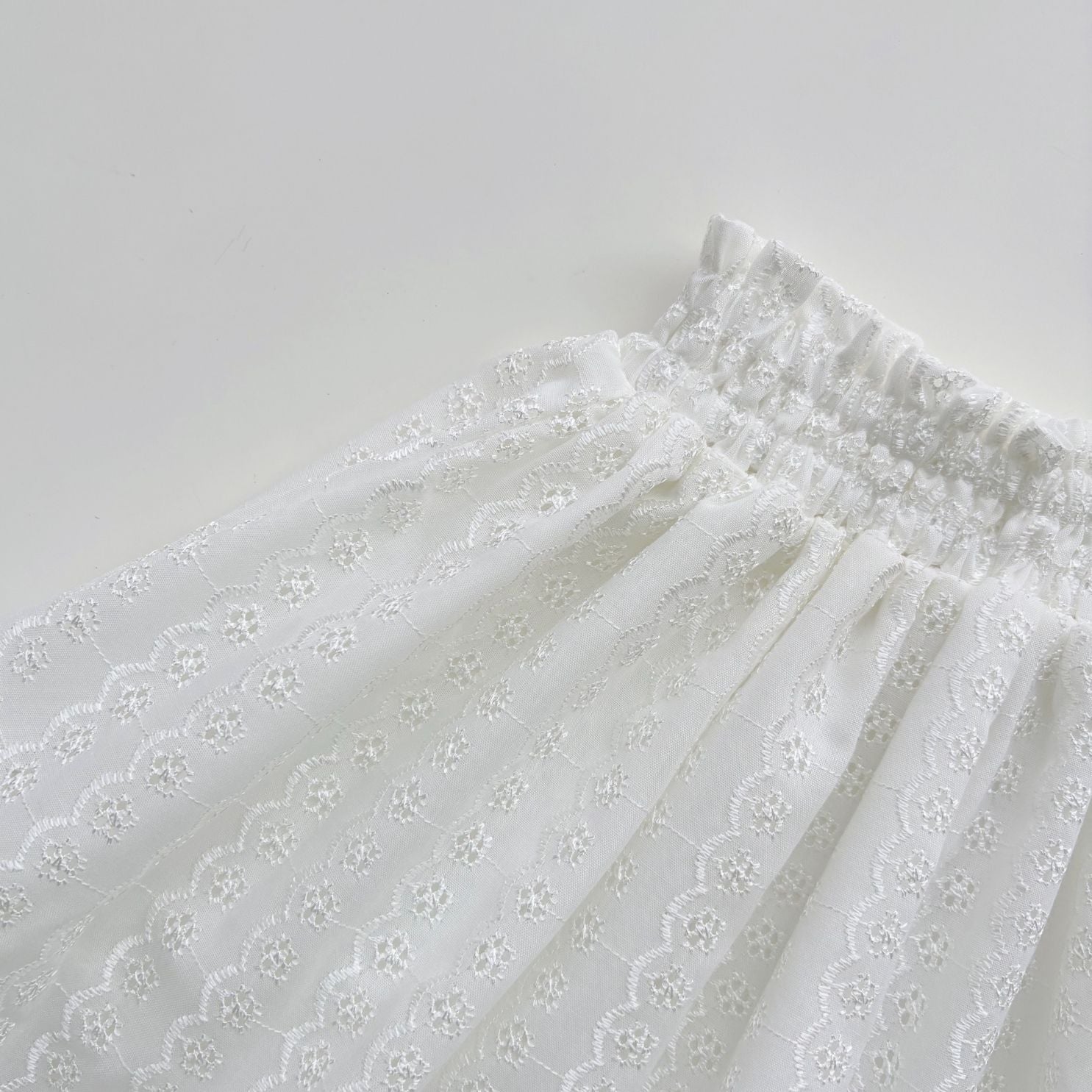 A girls’ skirt with beautiful floral embroidery, perfect for your little one. This bottom pairs beautifully with the Leona Top.