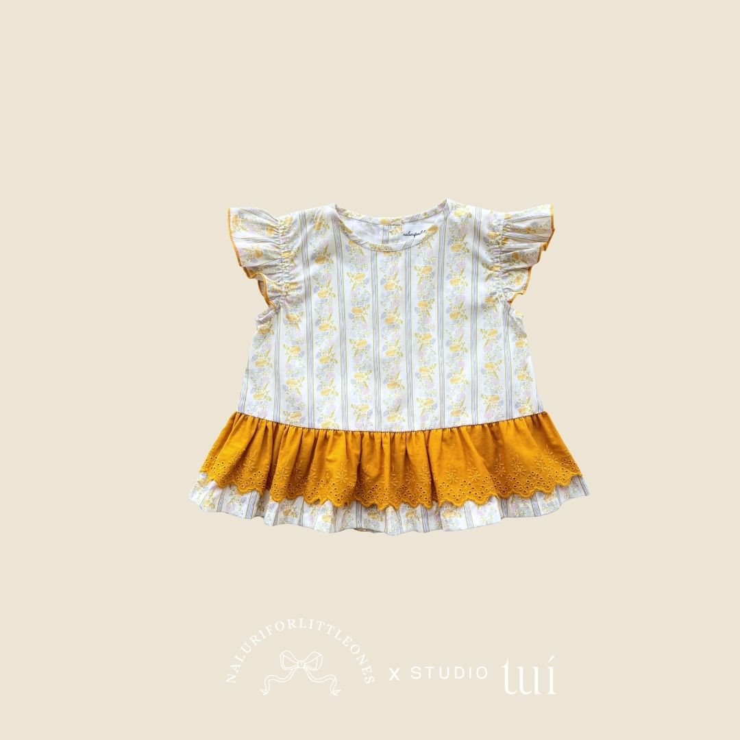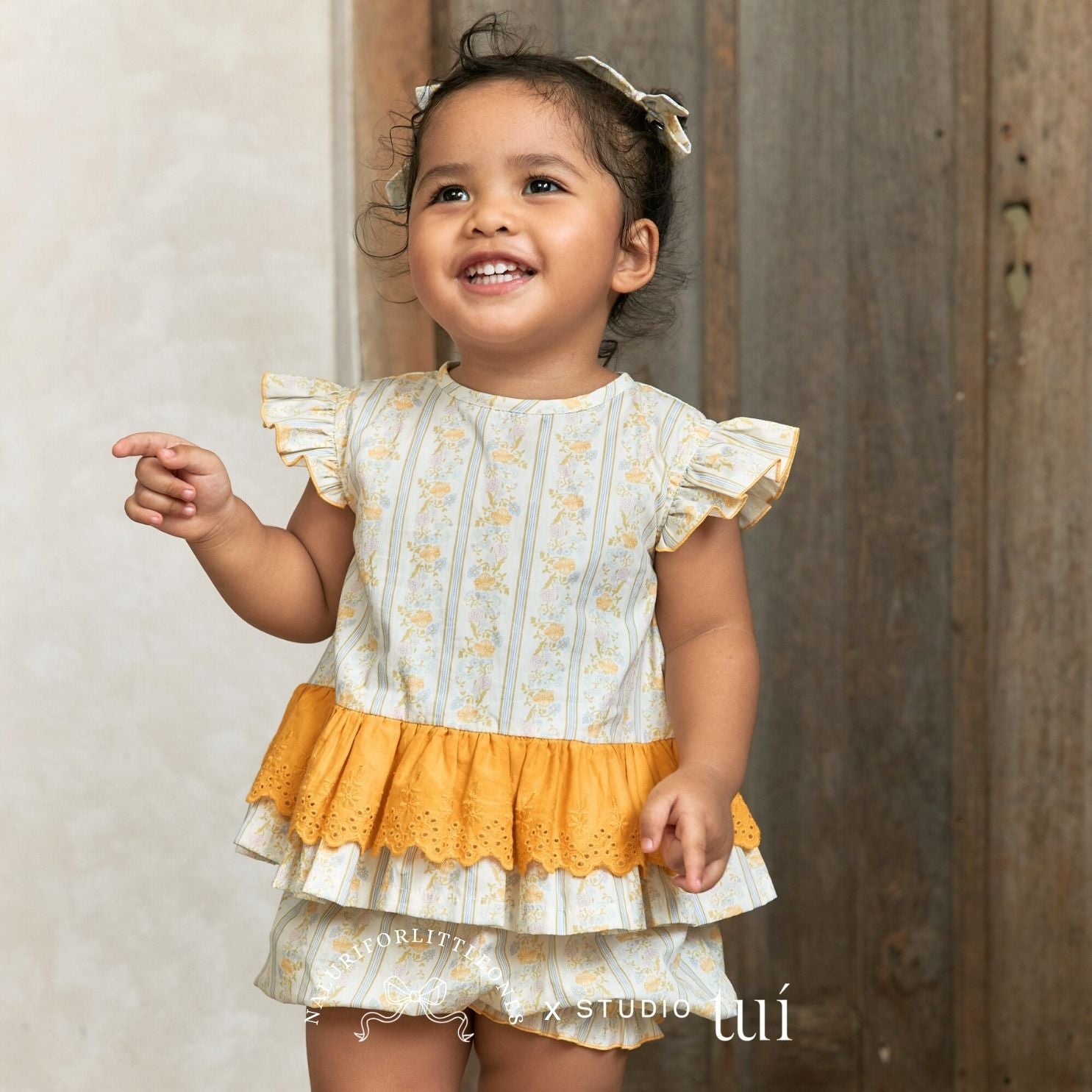 Girls’ top adorned with cotton lace — absolutely adorable on your little one. Even cuter when paired with the Tya Bloomers from Naluri’s collection. The charming floral pattern is specially designed for the mother-and-child twinning collection by “Naluriforlittleones x Studio Tui.”