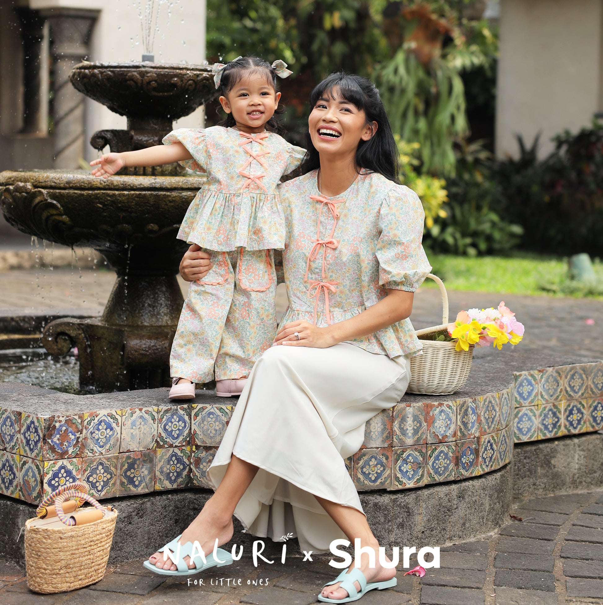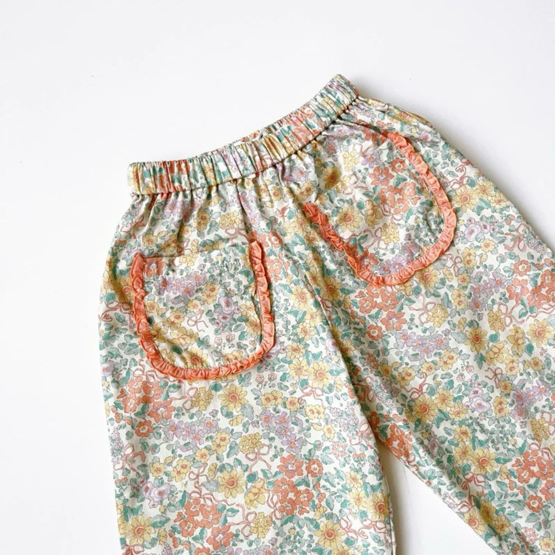 Adorable girls' pants featuring ruffle pocket details, perfect for your little one to wear. These pants pair beautifully with the SHURA Top. The lovely floral pattern is specially designed for the "Shura x Naluri" collection by Naluriforlittleones.
