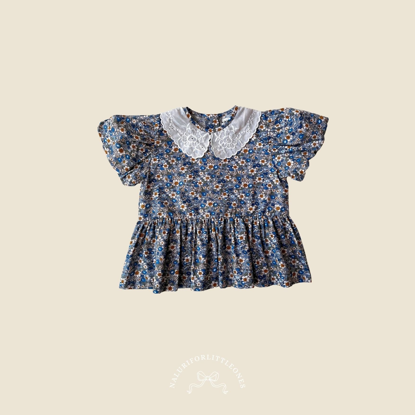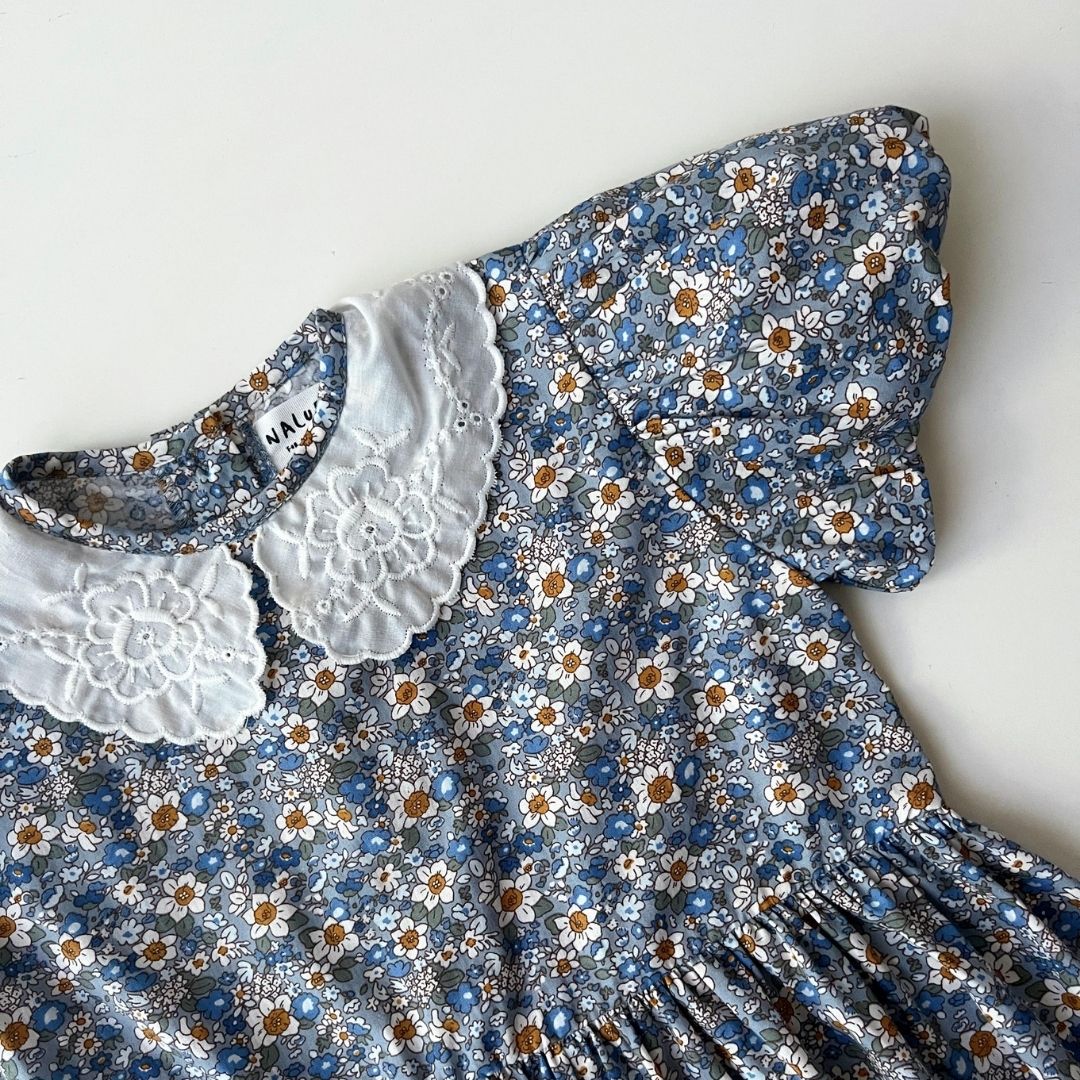 This lovely girls’ top features a charming ruffle collar detail, making it a beautiful choice for your little one. The sweet floral pattern adds extra cuteness—perfectly paired with Aliya Pants by Naluri For Little Ones.