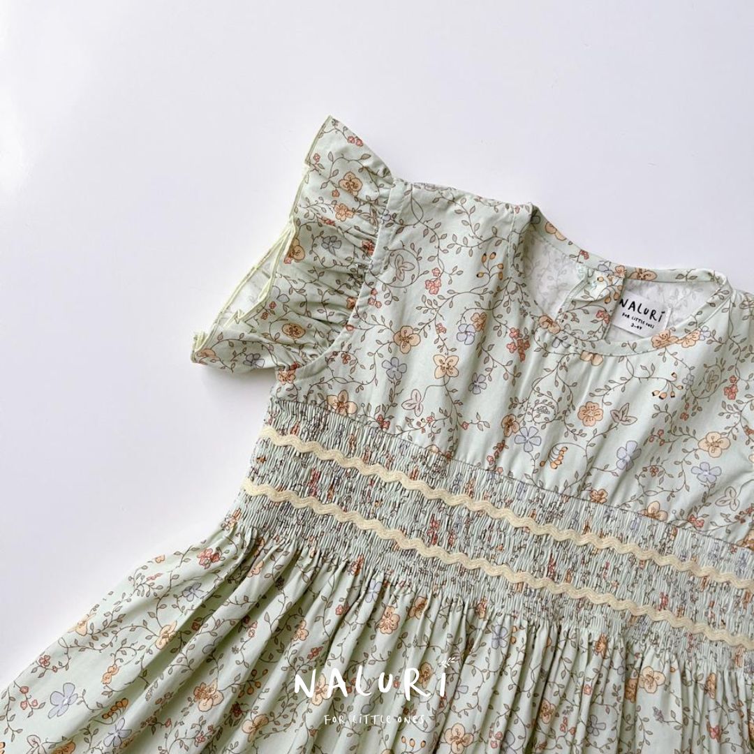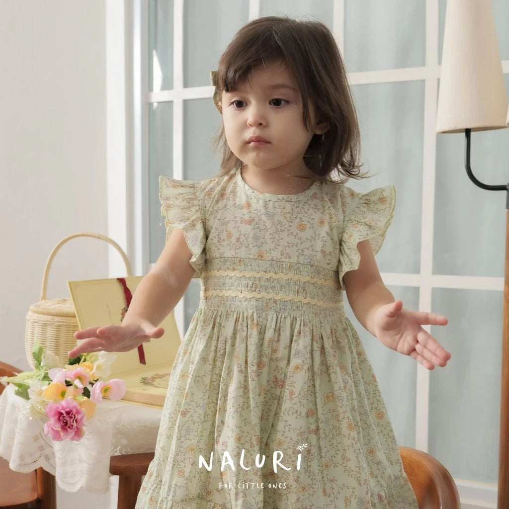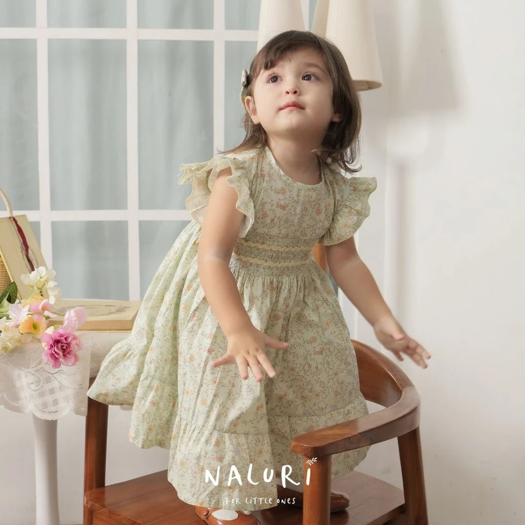 A charming floral dress adorned with ruffles on the sleeves and smocking details on the chest — a lovely piece for your little one to wear. The beautiful floral pattern is specially designed for the "Raya Collection" by Naluriforlittleones.